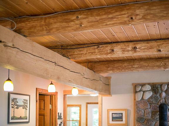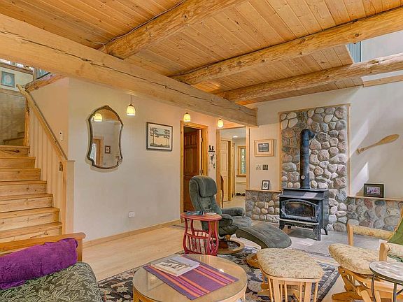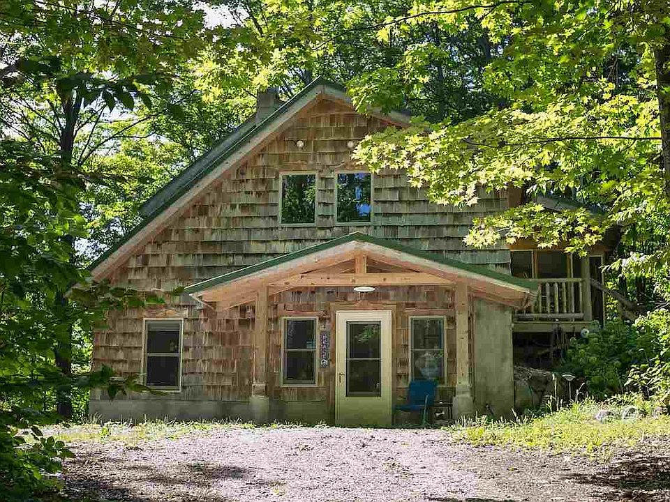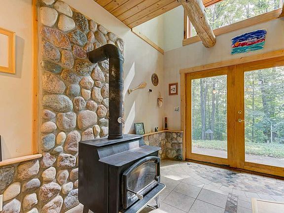 Wonderful south central Leelanau County opportunity for someone looking for a creative and well constructed home with just under 20 wooded acres. Located just 10 minutes from Traverse City, this fantastic, cottage style concept, features cedar shingle siding and metal roof, lots of windows to brighten the post and beam, and log accented interior spaces. Cozy in floor heating, spacious galley and island plan kitchen with granite and butcher block counter tops on the mission style, maple cabinets, pantry, with 7'x9' wine/root cellar, Lopi wood stove with cobble stone wall, tile and maple flooring in the living room, main level laundry/half bath, and guest bedroom. Master bedroom, family room, third bedroom, full bath with tub and shower, all with wood floors, overlooking the trees and rolling landscape on the upper level. Great outdoor living spaces include brick patio area, 8'x22' screen porch, fire pit, and 8'x12' sauna to enjoy after hiking or skiing on this diverse rolling and wooded land. Lots of potential with the 64'x30' pole barn with 12'x12' and 8'x9' overhead doors, concrete floor, and additional side lean-to for additional storage needs. Several areas to garden for those so inclined, two storage structures for wood and outdoor tools and equipment, a nice site with a blend of minimally landscaped and natural areas to enjoy!