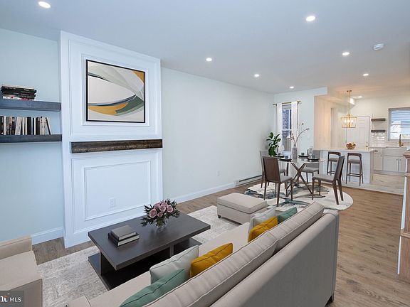 Welcome to the Kensington section of Philadelphia, where modern updates meet timeless charm in this fully renovated 3-bedroom, 1-bath home. Step inside to find laminate hardwood flooring throughout, recessed lighting on the first floor, and ceiling fans on the second floor. The entire house has been rewired and features new plumbing, ensuring peace of mind for years to come. All-new windows with brushed gold curtain rods add a touch of elegance to every room. The stunning kitchen boasts modern white cabinets, stainless steel appliances, a farmhouse sink, and gold accents, including the faucet, lighting, and hardware. Beautiful tile floors and a peninsula island with bar-top seating complete this chef’s dream. The luxurious bathroom features gorgeous tilework inside the shower and wrapped around the entire space, a floating vanity, gold lighting and fixtures, and striking black hexagon floor tiles. Each room is equipped with its own thermostat, allowing individualized temperature control for maximum comfort. The master bedroom offers a stylish wood-trim accent wall and plenty of closet space. The exterior features newly painted front brick, a freshly poured concrete backyard, and a modern wooden fence for added privacy. This home is a perfect blend of modern design and thoughtful upgrades. Schedule your showing today!
