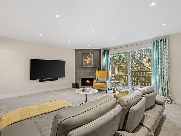 Flat ceilingsSleek gas fireplaceCustom built-insDesigner kitchenQuartz countertopsCeiling-height cabinetryCenter island