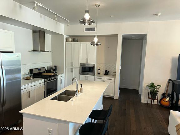 Step into a bright and airy living space highlighted by stylish wood flooring in all the right places. The expansive kitchen boasts white cabinetry, sleek white quartz countertops, stainless steel appliances, gas stove, and a large island, perfect for entertaining or everyday living. Both bathrooms offer quartz counters, modern fixtures, and beautifully tiled finishes. The spacious owner's suite is a true retreat, complete with a walk-in closet, en-suite bath featuring dual-sink vanity and step-in shower, plus direct access to a private balcony ideal for enjoying your morning coffee. Additional highlights include a large storage locker in the parking garage. Whether you're looking for a primary residence or a lock-and-leave second home, this property offers both comfort and convenience. Edison Midtown is conveniently located near Central and Osborn, just moments from all the best of Downtown Phoenix including Sprouts Market, Epic Fitness, and over 45 world-class restaurants. Or stay close to home and unwind at the community's heated pool, spa, fitness center w/ state of the art equipment, and gas BBQs. Don't miss this opportunity to own a model-perfect home in a truly magnificent community!