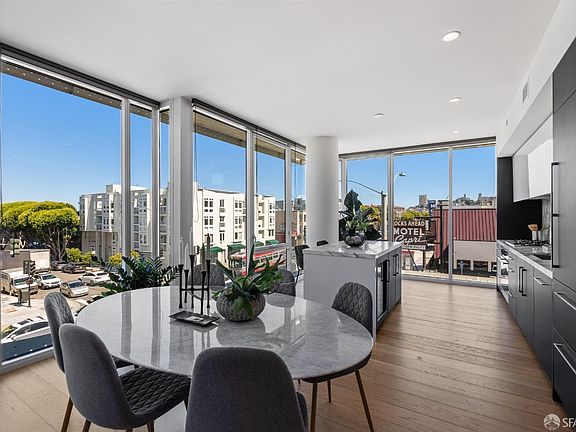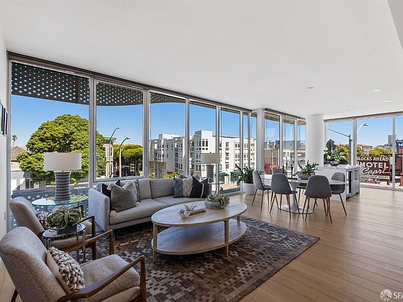Experience unrivaled luxury in this 2bd/2ba condo at The Murano. Built in 2021, this 1,198 SF (per tax records) gem epitomizes modern urban living. This corner unit offers an open floor plan with effortless flow from the living area to the kitchen, drenched in natural light through floor-to-ceiling windows. A massive center island, marble countertops, Studio Becker cabinetry, and top-tier Miele appliances including wine refrigerator make the gourmet kitchen a chef's dream. The primary bedroom boasts a walk-in closet and spa-like bathroom featuring designer tiles and dual sinks. A second bedroom, hall bath, in-unit washer/dyer, 1-car parking and deeded storage complete this urban retreat. The Murano elevates living with Google Webpass, a designer lobby, and a roof terrace with Golden Gate Bridge views, BBQs, fire pits, and lounge areas. Ideally located in Cow Hollow, you're just one block from Chestnut Street's vibrant retail and steps from the Union Street corridor. Walkable to the Presidio, Crissy Beach, and Fort Mason Farmer's Market.