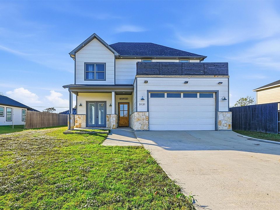 This modern home situated on nearly .3 acres! This beautiful 4 bedroom, 3 bath home is located on a quiet street with a large front and back yard. A large open concept kitchen with large island, gas range and plenty of natural lighting. The primary bedroom sits on the first floor with ensuite bathroom, large shower with multiple shower heads, soaker tube, and large walk in closet. The second floor features 3 bedrooms, a full bath and a flex space that leads into a spacious balcony. Please note the wooden railing on the right side of the balcony is loose. Spray foam insulation throughout. Minutes away from I-35 & 287, making it perfect for commuting.
