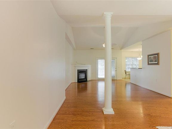Fantastic opportunity to own one level living in Midlothian! Offering an open floor plan with 9' ceilings, three bedrooms, including a large master suite, two full baths, kitchen, dining room, and family room with gas fireplace. The eat-in kitchen offers an abundance of counter and cabinet space, bar with extra seating and the fridge conveys. The spacious master suite has a large ensuite bath with dual vanities, tile floor, shower, soaking tub, and huge walk-in closet. Easy access for everyone with extra wide doorways, barrier free access to all rooms, and stepless shower with grab bars in the master bath. No steps anywhere! The side entry 2-car garage is also barrier free and has additional storage above. Relax on the front porch or rear patio in the private, fenced back yard. Welcome Home!