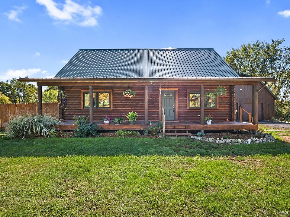 Discover your perfect retreat w/this stunning newly listed log home set on 10 picturesque acres, offering a serene retreat for nature lovers & wildlife enthusiasts. This home boasts a spacious & inviting covered front porch, seamlessly extending your living area, allowing for an unparalleled blend of comfort & outdoor enjoyment. Recently updated, this home perfectly blends rustic charm w/modern conveniences. The main floor features an open-concept living area w/vaulted ceiling, new carpeting & large picture windows allowing for plenty of sunlight to flood the area. Modern kitchen recently updated (Dec '23) w/gorgeous quartzite countertops, fresh tile work, tons of counter & cabinet space, and an oversized eat-in area. Mud room w/new ceramic tile off of the kitchen leads out toward the backyard & garage. Two nice sized bedrooms on the main floor w/brand new carpeting (Jun '24) and updated hall bath. Upstairs features an open & airy loft overlooking the main floor, a huge primary bedroom w/beautiful views & a stunning full bath recently updated (Dec '23) features a beautiful Euro-shower, new fixtures and ceramic tile. With a brand-new roof (May '24) and a meticulously maintained exterior (exterior logs/wood cleaned & stained May '24), this home promises both beauty and durability. Full basement and a large loft over the garage offers additional living or storage space. Experience the efficiency of a transition from propane to natural gas, coupled with a newer HVAC system, furnace, and hot water heater. This property isn't just a home; it's a serene lifestyle waiting for you. This beautifully maintained property promises tranquility and a contemporary lifestyle all in one scenic package. For a deeper appreciation of its beauty, schedule a showing today, and immerse yourself in this haven of modern living. Please refrain from walking the property or knocking on the door without a licensed realtor/schedule showing. **Exclusions Exist: Security Cameras (interior/exterior/kennels)**