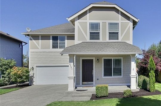 Bright and cheerful home welcomes you with its smart design including a spacious living/dining rm combo. Enjoy the cozy family room with gas fireplace and open kitchen w/ granite and eat-in bar area. ALL stainless appliances included! Frieze carpet and hard surfaces throughout the home. Roomy master suite with partial view of Puget Sound. Relax in the master soaking tub highlighted w/ natural light. Enjoy your privacy in the tree line back yard! $329,900.