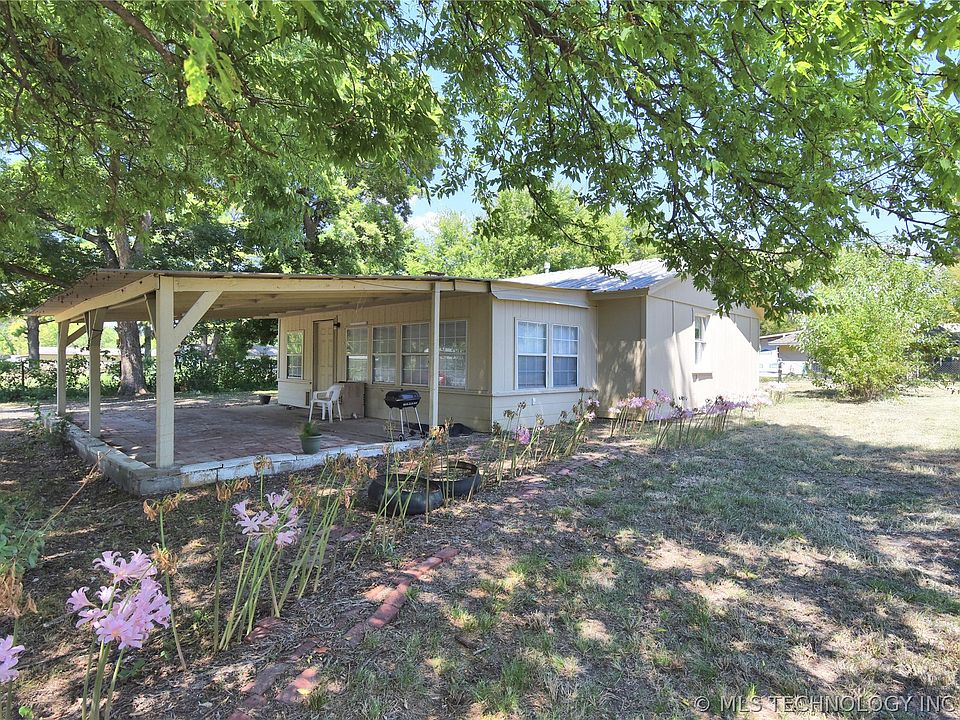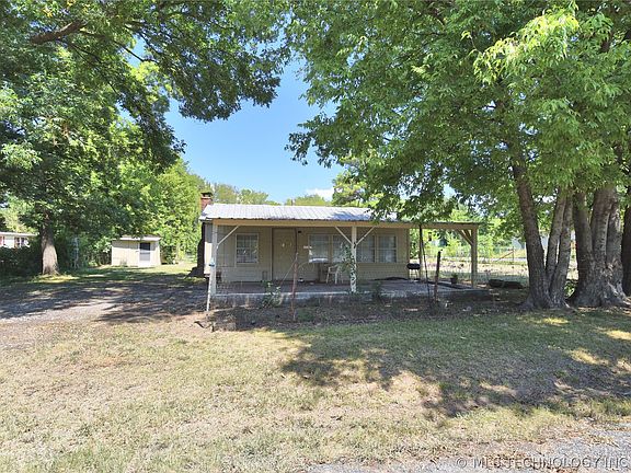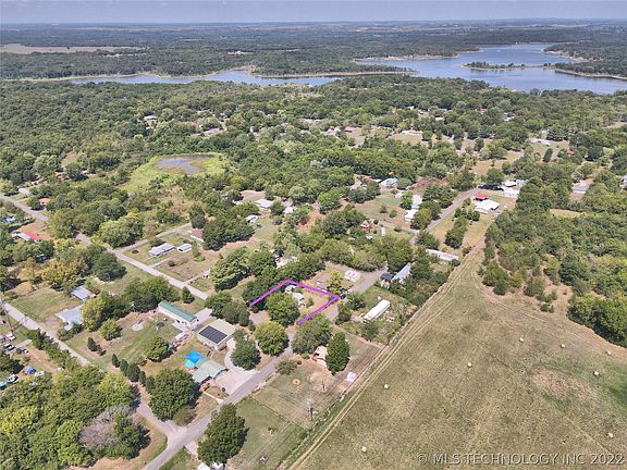 Motivated Seller!! Deal Fell due to No Fault of Seller/Property.  Less than a mile from Ft Gibson Lake, this cute home sits on a spacious corner lot. Enjoy ranch style home with a metal roof & a covered front patio. The living space focuses on a wood burning fireplace, complimented by a thick wooden mantle and a swinging arm pot holder like ranchers used to cook with. Light & bright kitchen with a bar/counter that opens to the living area. Carpet in the bedrooms only. Inside utility room. Detached storage. AC 2 yr old. USDA Rural Development area.