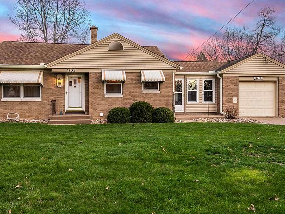 Cute Mid-century Modern all brick ranch has amazing curb appeal! Move in ready! Home has 2 bedrooms, 1 bath room, 1 car attached garage. Kitchen updated, new tile floor!!. Has a breakfast nook and built in cabinetry and pantry. Kitchen Appliances and washer and dryer stay with home. Walk down the hallway to see beautiful built-in Cedar Closet. New carpet and windows throughout. Has an unfinished basement that you can make your own, never water, no sump pump needed, built in storage. There is Stall and shower in basement along with laundry room. Carpeted breezeway attaches to single car garage. Breezeway has new windows and doors in 2017. Garage is insulated and has New garage door in 2014. Attic storage above Garage. Back Yard has ravine with stairs, patio and shed. New Roof - 2006, furnace, 2006 new gutters with gutter gaurd, downspouts, furnace is newer. New electrical panel 60 amp.