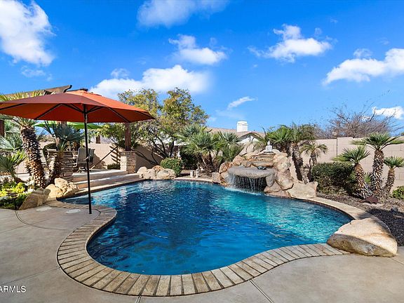 This single-level home in the desirable community of Villas at Toscana is now available and ready to be your new home. It has been meticulously maintained so you don't need much to feel right at home. It offers a large open kitchen and entertaining area so invite all your friends and get the desert living started. You can enjoy a backyard where your guests will feel like they're at a resort. The outdoor space seamlessly transitions indoors and offers a split floor plan with 4 total bedrooms plus an office and en suite guest room. This massive primary bedroom has access to a private patio, a spa tub, and an oversized shower! The backyard is fully-equipped with a pebble tec heated saltwater pool, a built-in BBQ island, a gazebo, and an outdoor fireplace! Make an offer we're ready!
