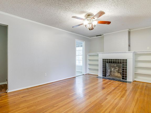 Cozy vibes: Hardwood floors, built-in bookshelves, and a cute fireplace create an inviting atmosphere.
