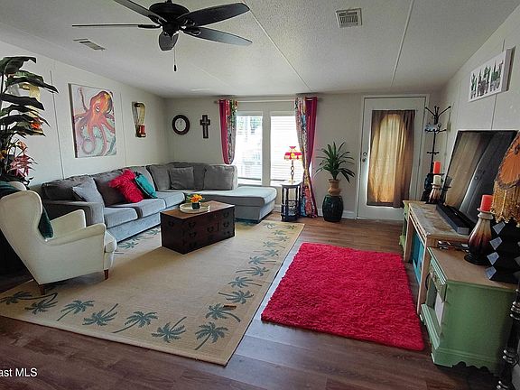 Enjoy this charming 3-bed, 2-bath home in Palm Bay Estates, a 55+ community with fantastic amenities. The home has an open layout with a large kitchen area and stainless steel appliances, a bright living space, and master suite with a private bath. Relax in the backyard or by the water as you explore the community's features, which include: a pool, canal and river access via boat dock, RV and boat storage, dog park, bocce courts, clubhouse, and more! Conveniently located near shopping, dining, and healthcare, this home offers comfort, activity, and community living all in one. A perfect retreat for an active lifestyle!