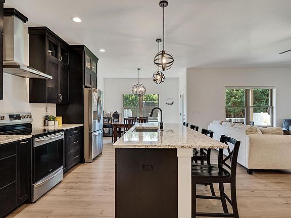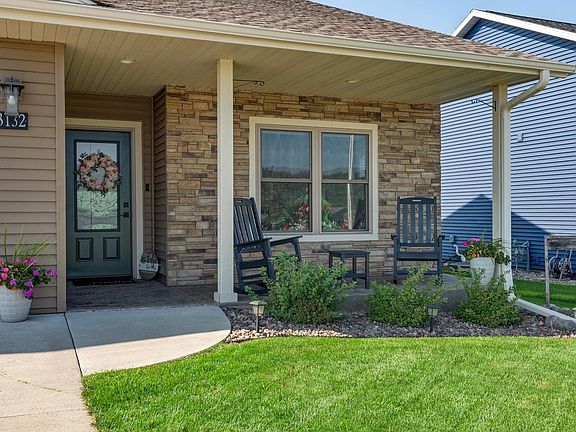 Twin home for sale in the highly desirable Seven Bridges subdivision! This property offers an inviting layout with modern design touches throughout. Enjoy the covered back patio with stamped concrete, a fenced yard, and privacy hedge pines along the back fence line. Inside, you'll find white trim that perfectly accents the rich, dark kitchen cabinetry and granite countertops. The grand center island and gas fireplace make the main living area both stylish and functional. The spacious master suite features dual vanities, a large walk-in closet, and a beautiful master bath. Large rooms throughout, main floor laundry, and zero-entry access (no steps) provide comfort and convenience. Additional highlights include a covered front porch and a location just across the street from the park!