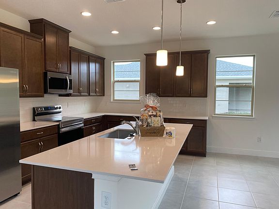60" wide large size lot, brand new home in Enclave Harmony 20 minutes from Lake Nona, Medical city, 30 minutes from Orlando airport. 30 mins to I95, 40 minutes to Melbourne beach, off Rd 192. A beautiful 18 holes Golf Community. 2350 sf/ac energy efficient homes. Double pane insulated windows 4-bedroom 3 Full-bath 2 car garage tiled flooring in first floor all common area. One bedroom in first floor with full bath. Parking in garage, drive way and street. covered patio overlook the woods. 42-inch wood cabinets, stylish backsplashes, gourmet kitchen package with Samsung upgraded stove and microwave. Stainless steel appliances and range hood w/vent out built in, large kitchen island, beautiful Quartz countertops. tile throughout 1st floor. Master suite with huge shower and double vanity. Walk in closet. Trending barn door. Front door facing lake/pond view. Harmony offers great community schools. ranking 9/10... It includes 24 rounds of golf annually, free play after midafternoon, boating and kayaking, community gardening, swimming pool, gym, pickled ball dog park. Formal dining restaurant, coffee shop, pizza restaurant etc. Owner pays HOA, renter pays electricity, lawn care, nonsmoking home. pet not big than 25 pounds.