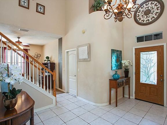 Beautiful, well maintained and cared for, 3 bedroom, loft, pool home in the coveted community of Seven Oaks. There is great curb appeal with lush landscaping as you drive up to this home. The towering palm trees give it the feel of Florida living. Enter into the soaring 2 story foyer and notice the nice architectural details which include rounded walls and art niches. There is a dining room which is enclosed with French doors and could make a great office or bonus room. The family room and kitchen are the heart of the home. The gourmet kitchen features solid surface counters, a center island and large walk in pantry. Cooks will love the double oven range and built in microwave. The breakfast nook has large windows that overlook the pool and conservation. You may even see a deer as you are sipping your morning coffee! The family room is oversized and has sliding doors that lead to the outdoor lanai. You can sit and relax under the covered patio and even have your TV outside! Imagine entertaining your friends and family poolside with room to dine and lounge on the large patio and swim in the sparkling pool. Upstairs there are 3 bedrooms plus a loft area. The master suite features a large bedroom plus a spa like master bath complete with garden tub and walk in shower. The secondary bedrooms are a good size and the loft makes a great tv area, office or playroom. Seven Oaks is a master planned community complete with recreation building with fitness, movie theatre, pools, water slide, café and more!