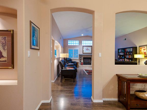 Back on market-A rare 4 bedroom single level home located in the desirable Gleneagles neighborhood. Master suite and living area opens to a large covered and expanded patio. New refrigerated air, windows in most of the home, kitchen & bathroom cabinets refaced, new laminate wood flooring in entire home, walled & private yard, Garden with roses and flowers & trees. Huge ¼ acre fully landscaped lot with mature trees, Updated Stainless Steel Kitchen Appliances, dishwasher, refrigerator, microwave & range all included. Leased solar panels with potential to buy out in future. Located in the heart of Rio Rancho minutes away from local parks, sport facilities, dog parks, dining, and shopping.