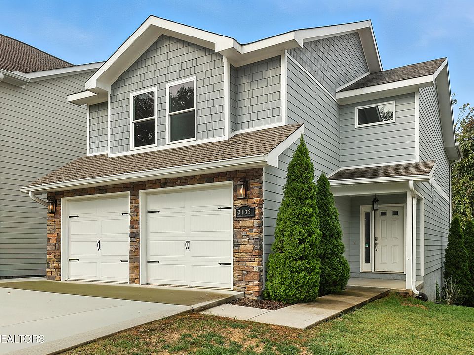 Welcome to Bakertown Station! Navigate to either I-75 or I-40 easily as this home is situated conveniently between the two! Whether you are going to North Knoxville or West Knoxville, this home allows to easily navigate around town! This 3 bed/2.5 bath home features a covered porch, stacked stone accent around a 2 car carriage-style garage doors, hardie plank siding, and a 2 story foyer entryway. The main level features a sprawling living room, kitchen/dining combo with granite countertops, and stainless steel appliances and a half bath. The second floor boasts three bedrooms, laundry, and two full bathrooms. The home has been fully repainted throughout and is move-in ready! Great deck space with privacy and a fenced back yard. HOA covers ground maintenance.