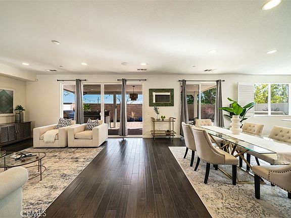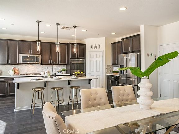 Nestled within the prestigious "Paseo at Riverwalk Vista" community, this exquisite home epitomizes luxury living with its meticulous design and premium upgrades. Situated on a spacious premium lot, this 4-bedroom, 2.5-bathroom haven offers unparalleled comfort and style. As you step inside, you are greeted by an ambiance of sophistication and elegance. The great room boasts engineered hardwood floors and a cozy gas fireplace, creating a warm and inviting atmosphere. Custom shutters adorn the windows, allowing natural light to filter in while maintaining privacy. Can lights and surround sound speakers further enhance the entertainment experience, while a double sliding glass door seamlessly merges indoor and outdoor living spaces. The gourmet kitchen is a chef's delight, featuring premium stainless steel appliances, quartz countertops, and upgraded cabinets. A ceramic tile backsplash adds a touch of refinement, complementing the large sink and island pendant lighting. The double oven and spacious layout make cooking a breeze, while the custom walk-in pantry offers ample storage space. Each bedroom is thoughtfully designed with comfort in mind. The master suite boasts a custom walk-in closet, pre-wire for a mounted television, and ceiling fans for added convenience. The en-suite bathroom features comfort height toilets, ceramic tile, and a deluxe vanity with dual sinks. Outside, the expansive covered patio is perfect for alfresco dining and entertaining guests. Enjoy the tranquility of the custom fire pit with a large seating area or whip up culinary delights at the custom tiled bar with a built-in premium grill and outdoor-rated refrigerator. The meticulously landscaped yard includes a drought-resistant front yard and grass dog run on the side of the house. Additional upgrades include smart home pre-wiring, shutters, window tint with UV protection, and a garage keypad entry for added security. The "Paseo at Riverwalk Vista" community offers an array of amenities, including a swimming pool, outdoor pavilion, tot lots, dog parks, and security patrol. Conveniently located near the 91 freeway and Metro station, this home provides easy access to IE, Orange County, and Los Angeles. With its luxurious features and prime location, this property offers a lifestyle of unparalleled comfort and convenience. Don't miss the opportunity to make this your dream home!
