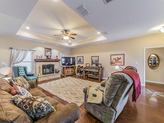 MOTIVATED SELLER'S, Stunning home that offers all the amenities of country living.This beautiful custom built 3.2.2 is located on 1.91 manicured acres with trees.This country charmer has stained concrete floors with a Texas star etching in the entry, wbfp with gas starter, open concept, stainless steel appliances,granite countertops,2nd living room recently added with Luxury flooring,split bedrooms, home is energy efficient.30X20 Workshop with electric,16X12 storage shed with electric,salt water pool with deck,2 stall barn,is loafing shed,tractor shed,feed and tack room,RV Parking. Come to the country and bring your horses.This unique home is perfect for entertaining and is ready to move in to.