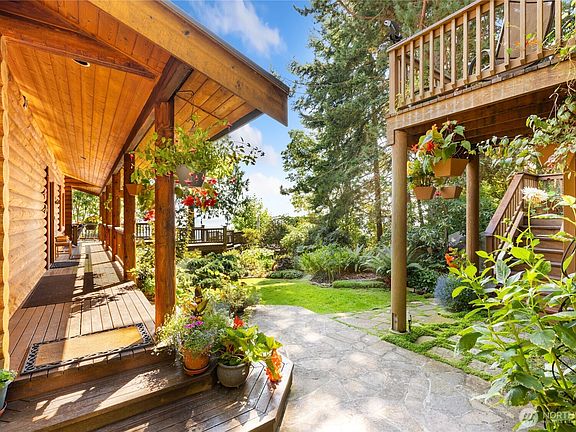 Hidden away in the lush beauty of the Pacific Northwest, this waterfront retreat offers a rare blend of elegance, privacy, and natural wonder. Enjoy sweeping views of Puget Sound & Cascade Mountains through walls of glass. A dramatic river-rock fireplace anchors the living space, while the chef’s kitchen—with expansive island, gas range—invites gathering and connection. Step from the primary suite to the hot tub to greet the sunrise, or unwind in the spa-like steam shower. Entertain on expansive decks near the cascading waterfall & tranquil pond surrounded by gardens overlooking the ever-changing tides. A guest apartment above the garage provides the perfect private escape for visitors. Auto generator, extra garage/shop, dog-run, see video