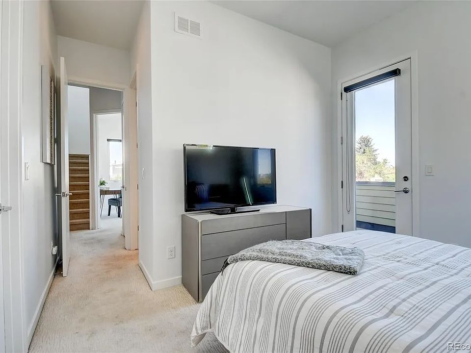 3133 W 18th Ave is a stylish end-unit townhome nestled in Denver's vibrant Sloan's Lake/West Colfax neighborhood. Built in 2015, this 2-bedroom, 2.5-bath home offers 1,380 square feet of modern living space with an open floorplan, hardwood floors, and a sleek kitchen featuring quartz countertops, soft-close cabinetry, and stainless steel appliances. As an end unit in a well-maintained townhome complex, it enjoys added privacy, extra natural light, and only one shared wall. Enjoy three private outdoor spaces, including two balconies and a spacious rooftop deck with gas and water hookups perfect for entertaining with panoramic views of downtown Denver and the mountains. The primary suite boasts a double vanity and generous closet space, while the attached 2-car garage and in-unit laundry add everyday convenience. Located just blocks from Sloan's Lake Park and Empower Field at Mile High, and minutes from local favorites like O'Dell Brewing, Sloan's Tap & Burger, and Alamo Drafthouse, this home offers quick access to I-25, 6th Ave, and downtown. This urban retreat combines comfort, convenience, and location in one of Denver's most sought-after areas.