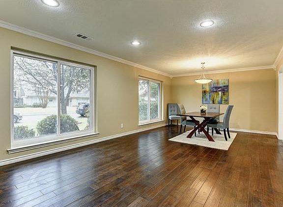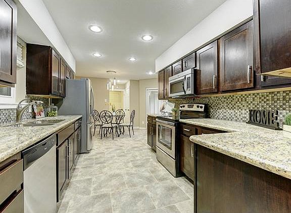 Fully remodeled home with travertine fireplace, scraped wood floors, recessed lighting, skylights. Master and Jack and Jill baths with travertine shower and bath, gorgeous marble vanity tops, walk-in closets in master and all bedrooms. Kitchen features new cabinets, appliances, granite counter tops, and breakfast room. New frize stain guard carpet in bedrooms. Recent low e windows, HVAC, water heater. Large backyard with wood privacy fence.