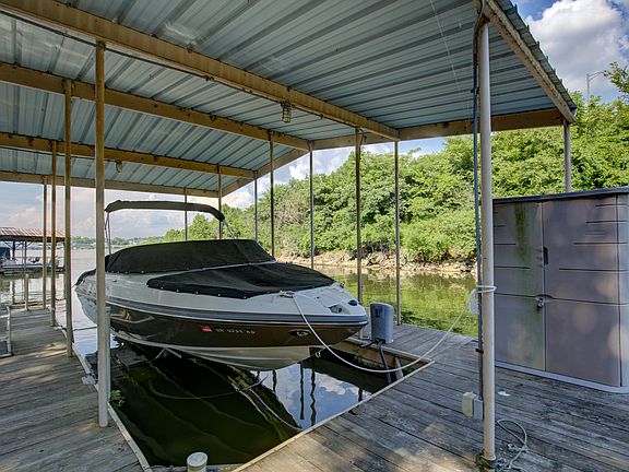 GREAT BUY! 2972 Sf Honey Creek 3/3 home with a covered boat dock & lift. Great location close to town in a protected cove. 2 living rooms on the lakeside . One up and one downstairs both with fireplaces. Wrap around deck and patios with hot tub. Work shop or make it a 4th bedroom in walkout basement. Granite counter tops. Master has a tiled shower. Open kitchen & living room. 2 bedrooms on main level. Whole house water purifier with reverse osmosis drinking water. Wireless fence with dog collar for your pet. Newer heat & air units. Great weekend retreat or retirement home. Storage building. Comp. Roof replaced Approx. 1 yr ago. Owner have painted inside & have remodeled some.