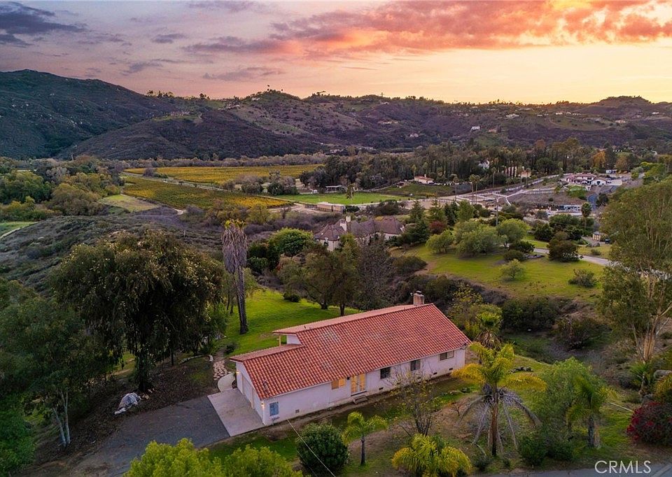 ** PRICE CORRECTION** Welcome to 31330 Rancho Amigos Road in beautiful Bonsall, where peaceful rural living meets modern comfort. Situated on 5 usable acres with panoramic vineyard and sunset views, this 3-bedroom, 2-bath, 1,680 sq. ft. single-story home offers privacy, versatility, and exceptional value. Enjoy the best of both worlds...serene country living while being less than 3 miles from the I-15 freeway, making commuting and daily conveniences easily accessible. Step inside to discover new, tasteful upgrades throughout. The stylish kitchen features stainless steel appliances, updated finishes, and a bright, open layout, ideal for cooking, hosting, and everyday living. The guest bathroom has been beautifully refreshed as well, including custom stainless steel details that give the space a clean, modern feel. The property itself is truly something special. The land is largely usable and includes a graded area ready for a potential ADU, offering excellent flexibility for multigenerational living, guest accommodations, or future income opportunities. Enjoy breathtaking sunset views that paint the surrounding vineyards in golden light each evening. A large 2,000 sq. ft. garage/workshop offers incredible opportunities...perfect for car collectors, hobbyists, storage, or creative space. There is also an on-site storage container for added utility. Whether you’re dreaming of a private retreat, room to grow, or a lifestyle that embraces both nature and convenience, this Bonsall beauty delivers it all. Come experience the peaceful charm and endless potential of Rancho Amigos Road.