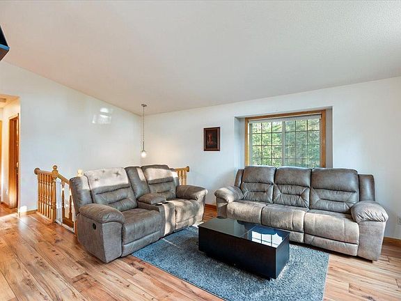 Set on a wooded, private 1+ acre lot, this 3BR/2BA home offers a bright vaulted main-level living room with oversized windows, a dining area with patio doors to a secluded back deck, and a kitchen with newer stainless appliances and a breakfast bar. The main level includes the primary bedroom and a second bedroom—both with walk-in closets—and a full tile bath. The fully finished walkout lower level adds a spacious family room with daylight windows, a third bedroom with walk-in closet, a second full tile bath, and laundry. Outside, enjoy mature trees, room to garden, and a side patio. Attached 3-stall garage with space for a workshop plus a concrete driveway. Convenient heart-of-Breezy location near resorts, premier golf, Pelican/Breezy area lakes, restaurants, and miles of trails. Move-in ready with the opportunity to update to your style.