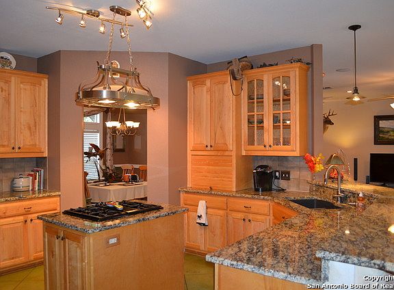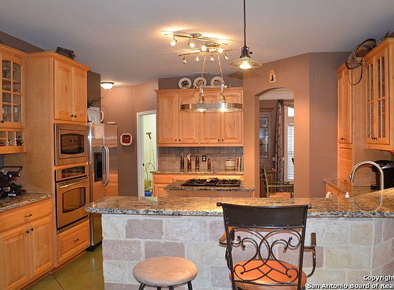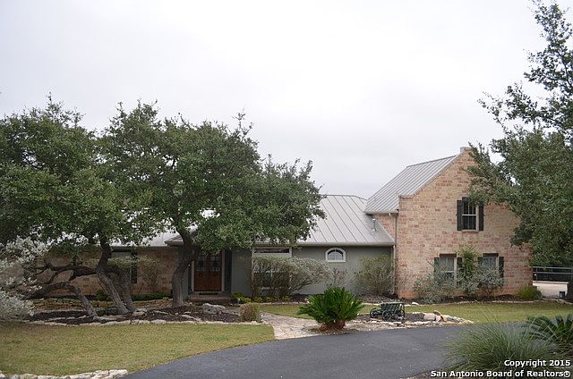 Custom 5 bedroom/3.5 bath Hill Country home on 2 acres with plenty of large Oak, flowering and fruit trees and overlooking a picturesque pond. 3 outdoor decks will provide plenty of space to relax and entertain. Hardwood floors, scored concrete, antique doors, maple cabinets, granite counters, bonus room with wet bar and full bath, metal roof, 2 A/C's, gas fire place, gorgeous landscaping, and incredible views.