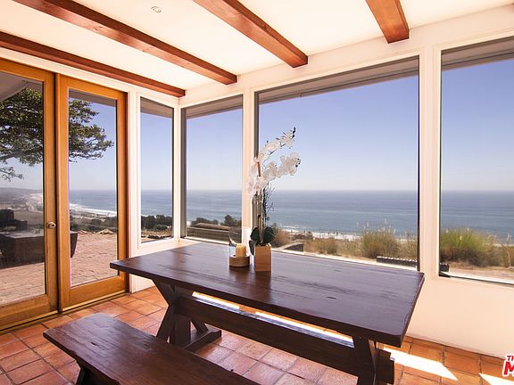 This stunning Pacific Coast Highway oasis is one-of-a-kind, sitting on approximately 7.70 acres and featuring spectacular panoramic views of the ocean from almost every corner of the property. The property features 3 bedrooms and 2 bathrooms, which includes a very private detached guest house. The charming home has a beautiful kitchen, spacious living room and dining area. The living room has a wood-burning fireplace and leads to a very large patio overlooking the most sought-after view that Malibu offers; a 180 breathtaking view of the Pacific Ocean. The outdoor patio boasts a spa and multiple conveniently located seating areas that also provide access to the spacious 1-bedroom 1-bathroom detached guest house. The gated property offers the utmost privacy with incredibly scenic views that are perfect for entertaining. With most of the propertys acreage being undeveloped, this unique Malibu sanctuary provides all kinds of opportunities for the lucky buyer.