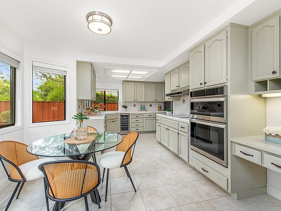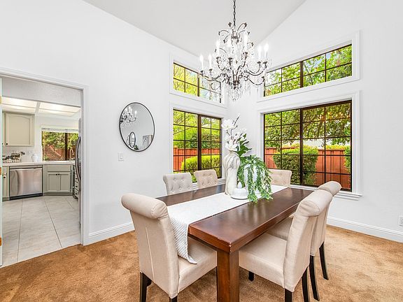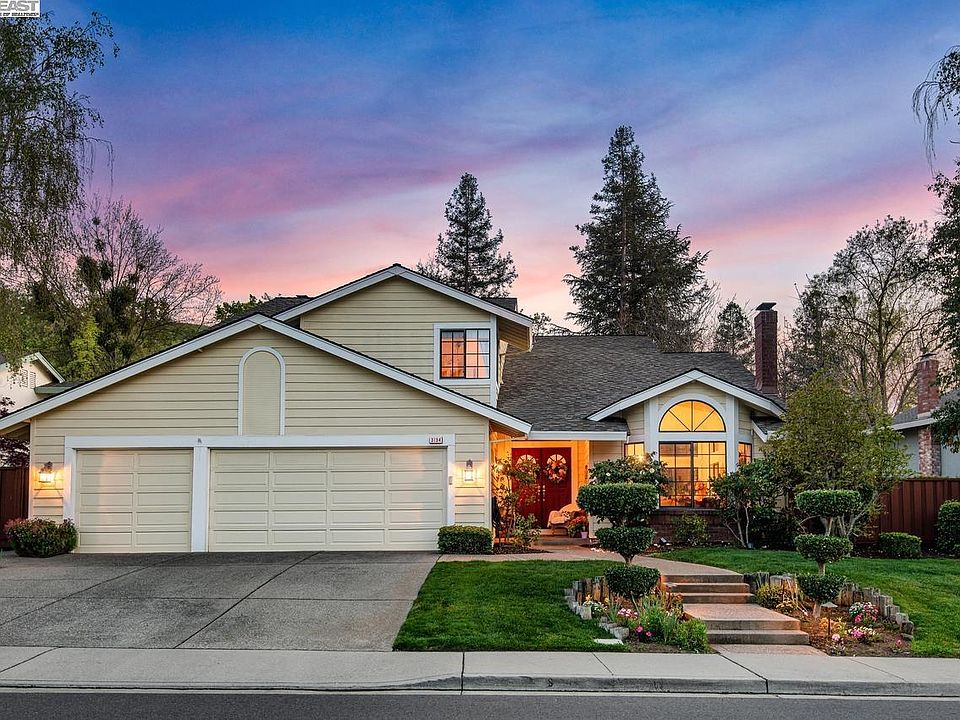 Discover this stunning 5-bedroom, 3-bath home in desirable Vintage Hills II, offering nearly 3,000 sq ft of living space on a spacious .26-acre lot. Enjoy a formal living room with vaulted ceilings, a stone fireplace, and a bay window showcasing a vibrant front yard. The formal dining room features corner windows overlooking the backyard. A wet bar leads to the kitchen and cozy family room with brick fireplace and sliding doors to a large covered patio. The kitchen includes ample counter space, electric range, oven, refrigerator, dishwasher, and wine fridge. A downstairs bedroom, full bath, and laundry room with 3-car garage access add convenience. Upstairs, the primary suite boasts tall ceilings, a soaking tub, shower, dual sinks, and walk-in closet. Three additional bedrooms share a full bath. Dual-zone HVAC and a whole-house fan provide year-round comfort. Enjoy hillside views, an iron-fenced yard, low HOA dues, and access to a private pool just steps away. Close to parks, top-rated Pleasanton schools, downtown, ACE Train, and tech buses. Open house 1-4pm 10/11 - 10/12.