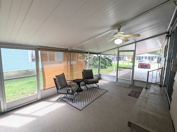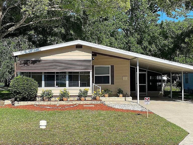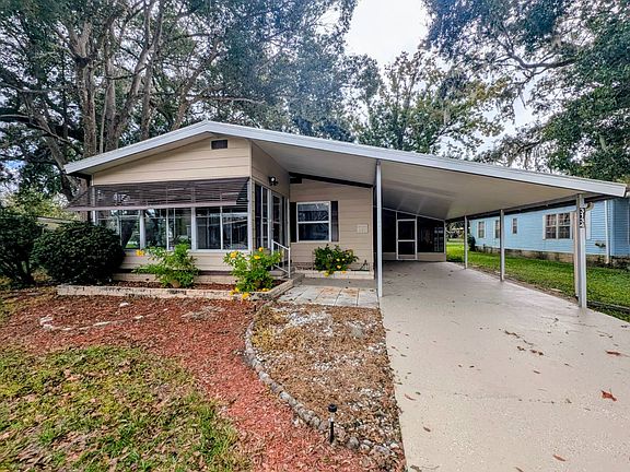 This move-in ready, fully remodeled 2-bedroom, 2-bath home is tucked away in a peaceful cul-de-sac with breathtaking water views. Situated in a lively 55+ community, this home combines modern style with practical comfort. It features a sleek contemporary design, with newer stainless steel kitchen appliances, large impact-resistant windows, and skylights that flood the open layout with natural light. Sliding doors lead to a tranquil screened front porch and side lanai. With new subflooring, flooring, light fixtures, fans, and a resealed driveway, this home is as durable as it is beautiful. Other updates include a new roof with a transferable warranty, a new vapor barrier, and updated HVAC ductwork. The upgraded bathrooms add a touch of luxury, while the overall design prioritizes effortless living. Enjoy the dream of a forever-vacation lifestyle! **Clover Leaf Farms is a 55+ community with a monthly lot fee of $856, covering water, sewer, trash pickup three times a week, and access to amenities like indoor and outdoor heated pools, a hot tub, sauna, fitness center, library, pickleball court, shuffleboard, and much more!