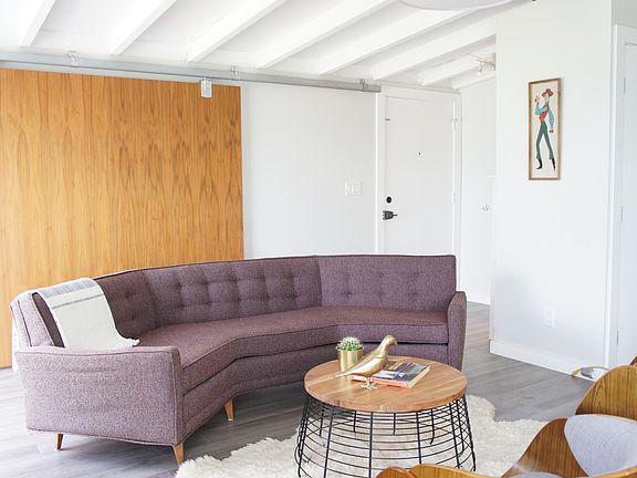 Midcentury Modern, newly renovated house for rent in Bay Park with large landscaped yard. This house is clean, bright, and located on "sun hill." It is close to San Diego airport, Mission Bay, beaches, and coffee shops. This property is ideal for capturing San Diego's finest sunsets, BBQs, and entertaining. Inside there is a large water fall quartzite island in the kitchen with designer cabinets and separate dining area with views of Sea World fireworks from the dining window along with a peak ocean view. The bathrooms are newly tiled; including the showers. The house has new plumbing and electrical throughout. The backyard has a large patio, LED lights along the fence, a natural gas hook up for your BBQ, and beach like sandbox, making the yard perfect for entertaining and enjoying San Diego's ideal weather. The yard is landscaped with drought tolerant buffalo verde grass and plants and includes a fruit orchard with avocado, peach, banana, plum, pomegranate trees and a garden box. The grass area has room for a trampoline and play-set. House comes with a large aprx 13 x 9' indoor storage room plus an outdoor shed in lieu of a garage. Includes A/C, heat, washer/dryer, dual fuel range, gas fireplace, and tankless water heater. Parking onsite for boat, RV, etc. Partially furnished available. Owner pays gardener. Tenant pays all other utilities including water and trash.