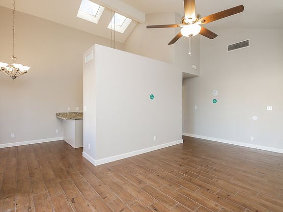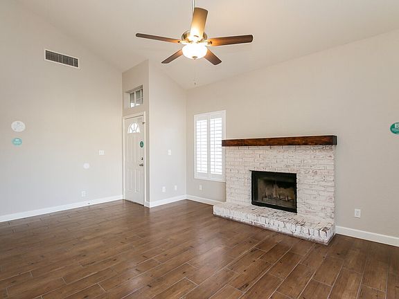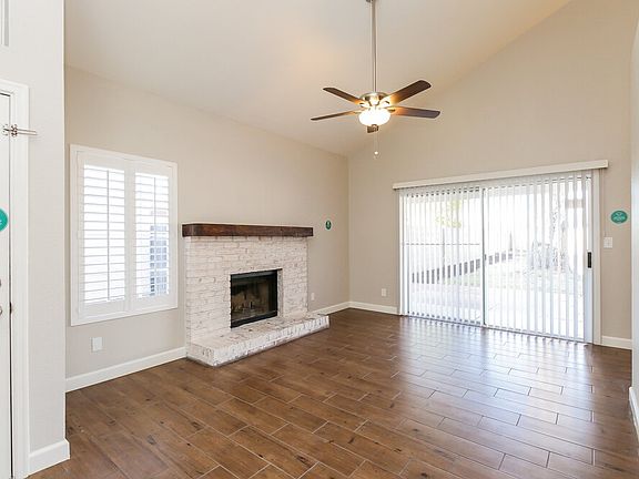 Enjoy single-story living in this three-bedroom, two-bathroom rental home with a fenced backyard in Mesa. Vinyl plank flooring, vaulted ceilings and a ceiling fan deliver year-round comfort in the living room. The fireplace and sliding glass door to the concrete patio add ambiance to the space. In the dining room, twin skylights and a glass and chrome chandelier illuminate your table. The kitchen provides granite countertops and brand new, stainless steel appliances for easy meal prep. Sleep well at night thanks to the master bedroom's luxury vinyl flooring and ceiling fan. The master suite also includes a private office and a bathroom with a garden tub and dual sinks. Tour this move-in ready, renovated Mesa rental home as soon as possible!