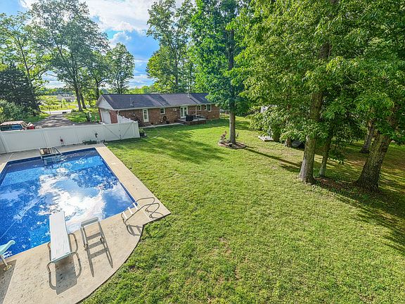 Beautifully maintained all-brick ranch set on a peaceful one-acre lot with mature trees. The updated kitchen features rich cabinetry, granite countertops, and a center island with a built-in range, opening to a spacious main living area with hardwood floors throughout. Roof replaced in 2025, offering added peace of mind. Enjoy summer days in the 18x36 in-ground pool, complete with a new liner, pump, and enclosed by vinyl privacy fencing. The home also includes a finished partial basement—perfect for a bonus room, hobby space, or additional living area. New septic tank and field lines. Property uses well water, with city water access available at the street. A rare blend of comfort, functionality, and outdoor enjoyment. 10 minutes to Fayetteville, and easy access to Huntsville.