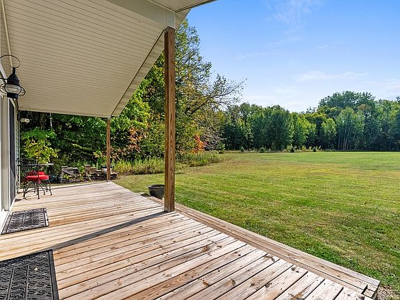 Rural life. Everything you have been looking for. Enjoy a pastoral view over your own peaceful meadow off your 8x28 covered deck. 3.91 acres including an estimated 1.1 acres of wooded area. 2185 sq ft with three bedrooms and two bathrooms. Open concept living with living room, dining area and kitchen. Area with cathedral ceiling and wall of windows. C/Air & individual air unit for those warm days. Two car garage insulated/drywalled/plastered and heated. Do not forget about your 26x36 metal out building to store all your toys. Another benefit is a RV hook-up distribution box if needed. Century link used for TV & Internet. Open house Saturday, October 11, 2025 from 10 a.m. to 12 p.m.