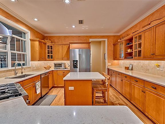 Gas fireplaceCenter islandMature shade treesSpacious laundry roomQuartz countersLandscaped backyardManicured land