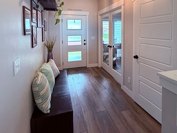 Panoramic lake and mountain views define this open-concept 6-bedroom, 3-bath home, where modern design, smart-home features, and thoughtful details combine for comfort and luxury. The kitchen features quartz countertops, stainless steel appliances, and Bluetooth speakers that carry sound throughout the upper level, while the living room offers a cozy gas fireplace perfect for relaxing or entertaining. Smart-home upgrades include a wired Nest system, smart porch lighting, a Ring doorbell, and five exterior security cameras.The fully finished walkout basement, complete with a separate entrance, kitchenette, laundry hookups, 8ft ceilings, and sound-dampening insulation between floors is ideal for guests, multigenerational living, or rental opportunities. Washer/dryer hookups on both levels add everyday convenience.Outdoors, enjoy a 3-year-old Bullfrog R-Series hot tub (seats 6), a fire pit, a fully irrigated garden, and beautifully landscaped grounds with rock accents. A newly finished 10ft X 12ft shed with electrical provides versatile storage or workshop space. The community offers playgrounds, BBQ areas, walking trails, picnic spots, and pet-friendly amenities. Buyer to verify all.