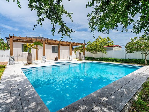 This is the one! This stunning home, built in 2017 and recently updated in 2024 with a new Kitchen, SS appliances and new flooring throughout. It is perfectly situated within walking distance of Schenley Park and Nicklaus Children's Hospital. Boasting 2,186 sq ft of living space on a 7,500 sqft lot, the residence features 4 spacious bedrooms and 3 bathrooms & equipped with impact windows for added security. Spacious living areas and open concept with tons of natural light. The backyard is a private oasis ideal for entertaining, showcasing an oversized pool with a jacuzzi & a generously sized gazebo. A pristine white fence surrounds the property, ensuring complete privacy. Inside, high ceilings create an open & airy atmosphere. By appointment only.