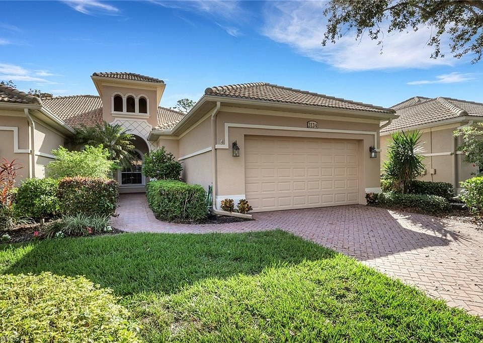 Welcome to 3134 Santorini Ct, a beautifully maintained single-family villa tucked inside the coveted gated enclave of Santorini at Olde Cypress. This light-filled 2-bedroom + den, 2-bath residence delivers comfort, privacy, and resort-style living in one of North Naples’ most desirable communities. Inside, the open-concept layout features soaring ceilings, neutral tones, and seamless indoor–outdoor flow. The spacious great room opens onto the screened lanai, creating an inviting backdrop for quiet mornings, evening cocktails, and easy entertaining. A well-designed kitchen with ample cabinetry and breakfast seating anchors the home naturally at the center of the floor plan. The serene primary suite offers direct lanai access, a large walk-in closet, and an ensuite bath with dual sinks and a walk-in shower. A separate guest bedroom, along with a generously sized den, sits privately on the opposite side of the home—ideal for visitors, a home office, TV room, or hobby space. The layout provides excellent flexibility and a quality canvas for future personalization, allowing the next owner to tailor select finishes to their taste. Residents of Santorini enjoy access to Olde Cypress’s outstanding amenities, including a beautifully updated clubhouse, tennis and pickleball, fitness center, bocce, and the award-winning P.B. Dye–designed golf course with **optional membership**—a valuable advantage for buyers seeking lifestyle choice. The central North Naples location places you minutes from premier shopping and dining, top-rated schools, white-sand beaches, and I-75. This is a rare opportunity to secure a move-in-ready villa with strong long-term value in one of Naples’ highest-demand zip codes.