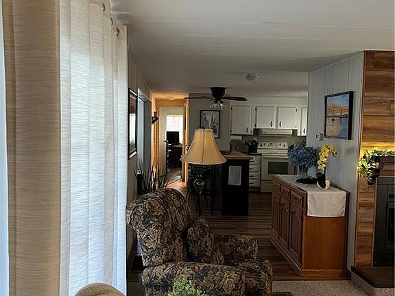 This recently remodeled two-bedroom, two-bath mobile home has lots to offer, with an open concept feel. There are two sitting areas, and also an updated island, and a fireplace. Update includes metal roof, tankless water heater, vinyl plank flooring. That's not all, the air conditioner is around two years old. The lot size included a double carport and a nice shed in the backyard. The golf cart is included. There are lots of amenities to enjoy, which include a large saltwater swimming pool and hot tub, pickleball, shuffleboard, Billard room, craft room, wood shop, and a dog park.