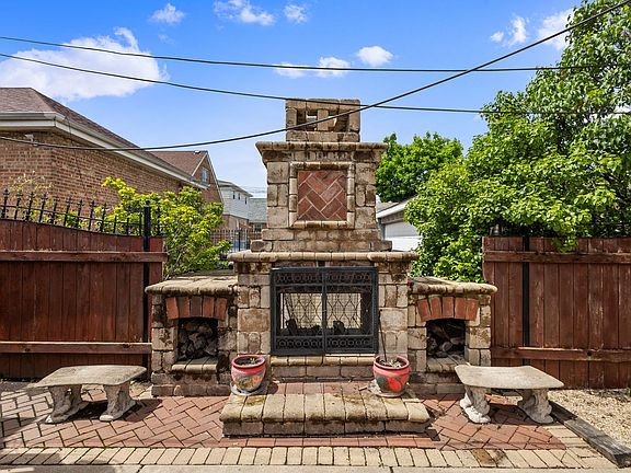Welcome to this stunning brick raised ranch located in the desirable Ashburn neighborhood of Chicago. This home exudes luxury and comfort, featuring gleaming hardwood floors throughout. The living space is warm and inviting, complete with four fireplaces-wood-burning, gas, and electric-that enhance the ambiance in multiple rooms. The kitchen is efficiently designed with high-quality stainless steel appliances, perfect for everyday cooking. Adjacent to this space is a separate formal dining area, setting the stage for memorable meals and gatherings with family and friends. The expansive primary bedroom is a private retreat, featuring new sliders that open to a beautiful deck. This deck leads seamlessly to a meticulously designed patio, complete with a breathtaking, giant fire hearth fireplace-ideal for outdoor entertaining and relaxation. Enjoy the convenience of a spacious 2 1/2 car garage and a huge finished basement, offering endless possibilities for use. The second bathroom transforms into a spa-like oasis with its own fireplace and an oversized whirlpool-style tub, providing the perfect spot to unwind. The current owners have removed the wall between two of the upstairs bedrooms to create a spacious primary suite. Additionally, a third bedroom can be added on the lower level, which includes a bathroom. This would transform the space into a luxurious en-suite bedroom with a fabulous, spa-like bath. This property is a city worker's dream, combining elegance with practicality in a vibrant community. Don't miss out on this impeccable home, where every detail caters to luxurious living and superb entertainment.