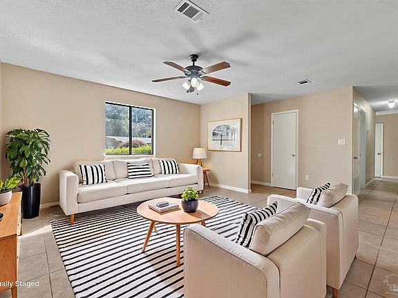 Welcome home to this all-brick beauty offering comfort, convenience, and peace of mind - and at an affordable price point too! With 3 bedrooms, 2 bathrooms, and over 1,200 square feet of well-designed living space, this home is both move-in ready and full of potential for your personal touch. Step inside to find a light and bright, neutral interior with durable 18” tile flooring throughout - easy to maintain and ready for your favorite furnishings. The kitchen features freshly-installed countertops/sink (October 2025), updated cabinetry, and a timeless subway tile backsplash. Both bathrooms have been thoughtfully refreshed with modern vanities, lighting, and fixtures, creating a clean and welcoming space. Big-ticket updates have already been handled - a newer roof (2021), brand-new HVAC (May 2025), newer water heater (2017), and the home comes equipped with energy-efficient double-pane windows - giving you confidence and comfort from day one. Outside, the manicured landscaping and tree-filled yard create the perfect (and private) backdrop for outdoor living. There’s plenty of room to entertain, garden, or create your dream patio. A large laundry room opens directly to the backyard for added convenience, and the single-car garage features a hurricane-rated door with a wide driveway and double parking pad. Located near Mobile Highway, with quick access to shopping, dining, and just a short distance from NAS Pensacola, this home delivers both practicality and possibilities. Whether you’re a first-time buyer, downsizing, or looking for a turn-key home with smart upgrades, this one is ready for you!