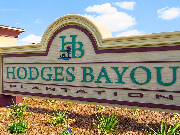 On the exterior of this home you will notice brick on the front with vinyl siding, dimensional shingles with 30-year warranty and a concrete walkway to the front door. The porch is covered keeping you dry on rainy days. The two-car garage has a steel garage door and leads right into the kitchen and dining area to the back door. Each home in Hodges Bayou Plantation includes a fully sodded lawn to each property line and flower beds at front entry.