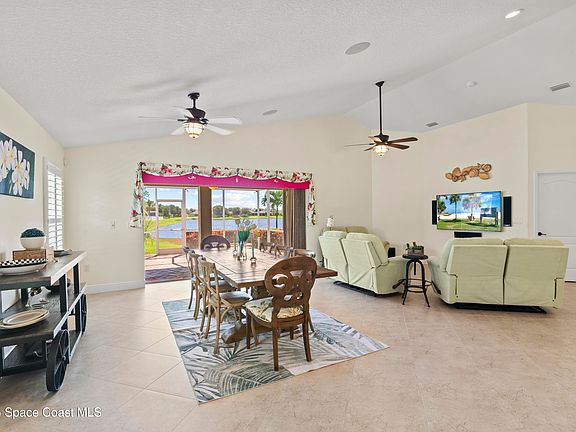 Welcome to your Florida lifestyle retreat! This semi custom-built home offers timeless elegance and modern upgrades, perfectly designed for comfort and entertaining. From the moment you arrive, you'll notice the upgrades that set this residence apart. Inside, soaring 14-foot cathedral ceilings, plantation shutters, and hardwood and tile flooring create an open, airy feel in this home. The designer kitchen features premium cabinetry, Thermador appliances, and a Viking refrigerator, ideal for the home chef. A 12-foot pocket sliding door opens seamlessly to the lanai, where you'll enjoy tranquil water views, a gas grill, and a fire pit—perfect for quiet evenings. The spacious primary suite includes a tray ceiling and a luxurious bath with travertine shower and walk in closet. With its premium lot and custom details throughout, this home is ideal for those seeking relaxation, beauty, and the best of Florida living. Close to dining, shopping, the Port and Highways.