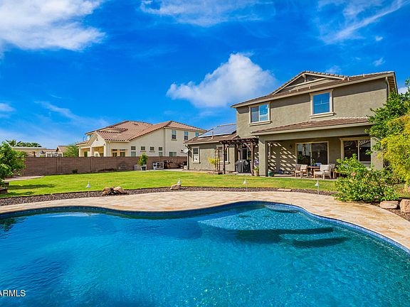 This beautifully designed 4,000 sq. ft. home offers soaring 10' ceilings and an open, thoughtful layout perfect for everyday living and entertaining. Enjoy the timeless touch of real wood shutters & blinds throughout and a 3-car garage, plus extra insulation for impressively low utility bills. Step outside to your private oasis with a sparkling pool wrapped in travertine, lush grass, mature trees, and an oversized lot with RV gate, all within a prestigious, sought-after community.