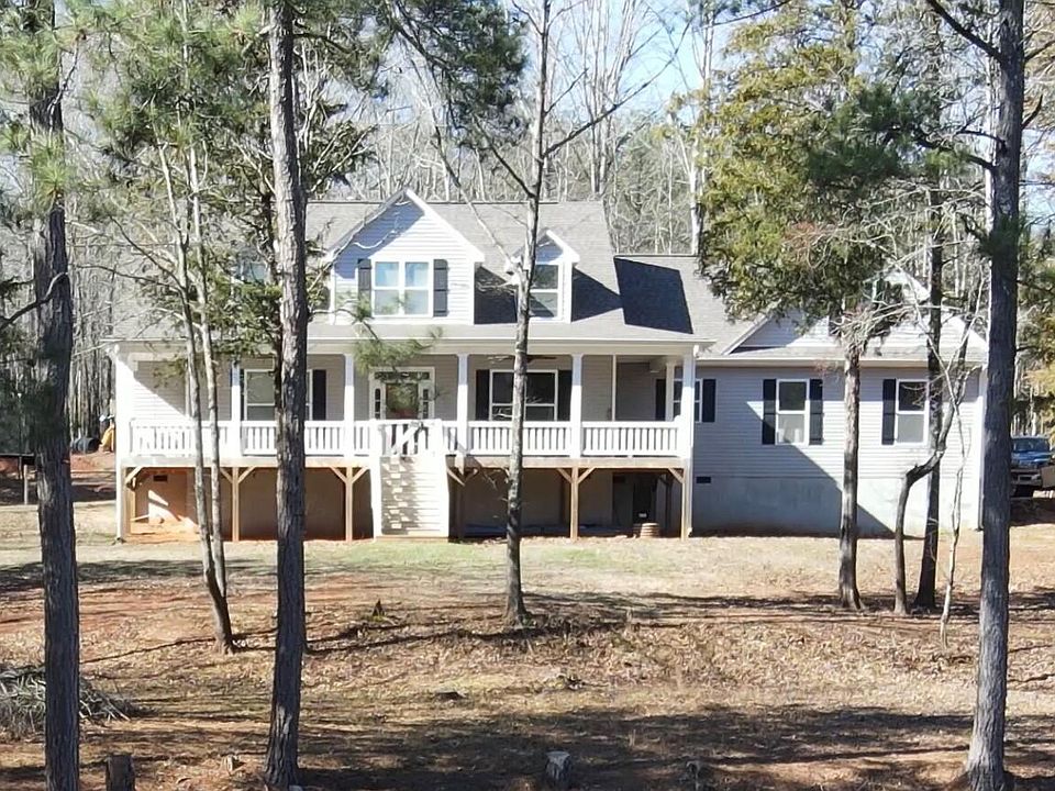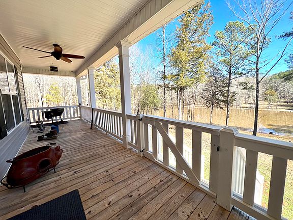 This home is a hunting and fishing paradise!! Nestled on over 35 acres, this home overlooks a large fully stocked pond filled with catfish, brim, and bass. This home is 5 years new, and includes upgraded solid wood custom cabinetry and granite counters throughout, scratch resistant laminate flooring and custom tilework, and carpet in the bedrooms. The kitchen features stainless appliances, a walk in pantry, and a large kitchen island with a breakfast bar. The main living area offers an open concept floorplan with a breakfast room off of the kitchen, and a cozy living room featuring a custom wood rustic mantle over a stack stone woodburning fireplace. The primary bedroom suite offers beautiful pond views, and the primary bathroom has a custom tiled walk in shower and large garden tub, plus dual walk in closets with plenty of storage space. This home has so many other great features, including a wrap around covered porch overlooking the pond, 2 HVAC units, architectural shingle roof, 2 electrical panels, windows by an Anderson owned company, many walk in closets throughout and ample floored attic storage, insulated interior walls and floors, and the 4th bedroom has an additional large approximately 29'x15' room off of it that would make a great 5th bedroom, office, or playroom. This home includes many exterior features, including a large pole barn that has a lean-to partially added to it; both have been concreted and fitted for framing. There is also a playground, deer skinning rack, 8'x8' well pump house with storage, and chicken house that remain with the property. The fully stocked pond sits on almost 2 acres and includes a fishing dock. The pond also has a separate driveway access from Wright Zellars Road. On the property you will find a variety of hardwood trees and abundant wildlife. Nothing about this home disappoints!