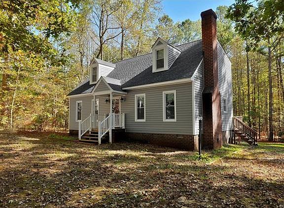 Beautiful four bedroom Cape with convenient location, two acres of privacy, updated vinyl siding and windows. Main level offers great room with wood floors and wood stove, sunny eat-in kitchen with wood floors, large picture window, wainscoting, chair rail molding and access to huge 27x12 rear deck, perfect for relaxing and enjoying the private setting. There are two bedrooms and full bath on the main level. Upstairs, there are two king-sized bedrooms and another full bath. There is an attached storage shed.