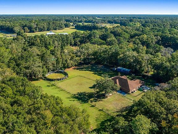 A rare Ocala gem custom log-cabin inspired home for rent on 3 acres in North Pine Ranchettes. This 3-bedroom, 2-bath residence built in 2014 offers over 2,300 sq ft of living space featuring real wood interior walls and ceilings, custom cabinetry, wood flooring, and vaulted ceilings. The open-concept kitchen includes an extended island with granite countertops, premium wood finishes, and custom lighting. Large picture windows overlook the surrounding 3 acres of A-1 zoned land with multiple fenced areas suitable for horses, pets, or gardening. A detached guest house provides additional living space ideal for extended family or office use. An additional fenced area with its own septic system is available for potential future use. The long private driveway leads to a peaceful setting surrounded by mature oaks and pines. A spacious covered patio offers the perfect spot for outdoor enjoyment and gatherings. Conveniently located just minutes from major retail, grocery stores, medical facilities, and other local amenities.