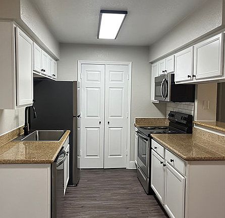 - Exterior features: Availability 24 Hours, Black Hardware, Close to Public Parks & Schools, Convenient Location, Flat Rate Utility Packages, Flexible Lease, Flexible Lease Terms Available, Fully Equipped Kitchen, Gooseneck Faucets with Sprayer*, Granite Counters, Heating: Electric, Individual Hot Water Heaters, Mature Landscaping, Night Patrol, On-Site Management, One Year Lease, One and Two Bedroom Apartments, One covered space per apartment., Online Maintenance Portal, Online Rent Payment, Pest Control Service, Professional & Responsive Management, Reserved Parking, Resident Events, Resident Referral Programs, Six Month Lease, Spanish Speaking Staff, Stainless Steel Appliances, Utilities fee required, View Type: Park, White Cabinetry