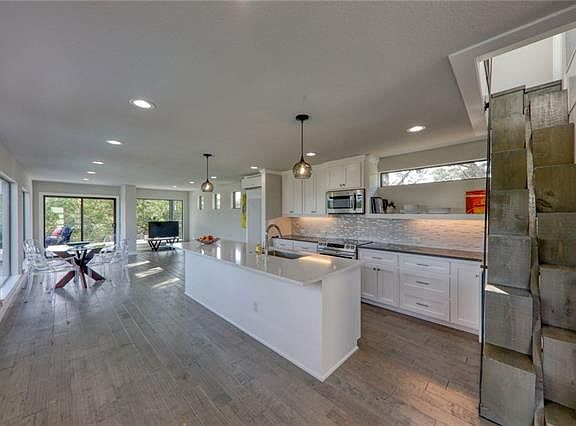 Villa de Shipping Containers overlooking Lake Travis. Itâs 3 unique units that all share a pool. Optimal use: Picturesque & sustainable chic setting for long term rental (rent 2 and keep one for your lake house) [or] a perfect family vacation home where everyone enjoys their own private spaces [or] just live your best life here, itâs awesome. Multiple level patios capture the natural beauty of Lake Travis and span the vast Texas hill country. Just a 45 minute scenic drive to Austin! Stairs can be changed.